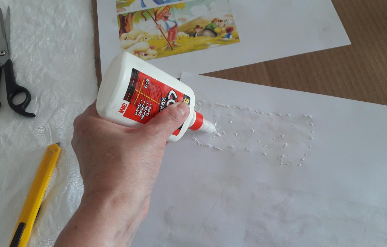 Passe cola atrás da figura ainda sem recortar e cole no papelão.